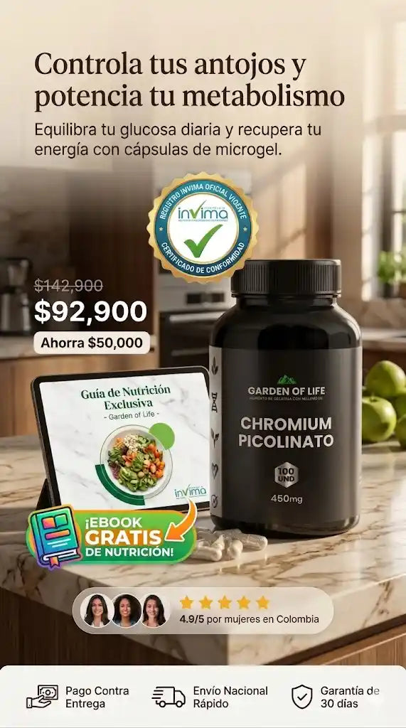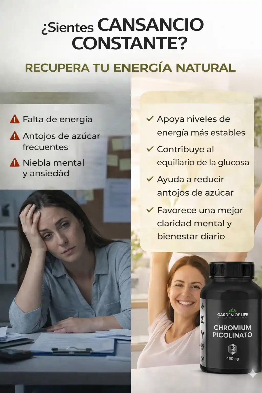 Mi problema siempre fue el cansancio y los picos de azúcar. Después de intentar mil cosas sin ver cambios, me animé con este. Me encanta que es una sola cápsula al día, súper fácil de consumir. El eBook '21 días para controlar antojos' fue el mejor complemento. Ahora sé qué comer gracias a su menú y, junto con el picolinato, me siento con energía estable todo el día